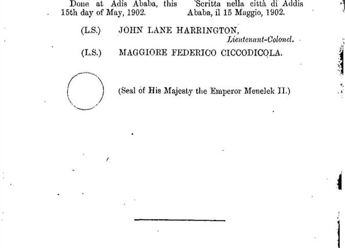وقد صدّق الإمبراطور منليك الثاني والضابط جون لين هارنقتون على الاتفاق، وحررت نسختان رسميتان باللغتين الإنجليزية والأمهرية.