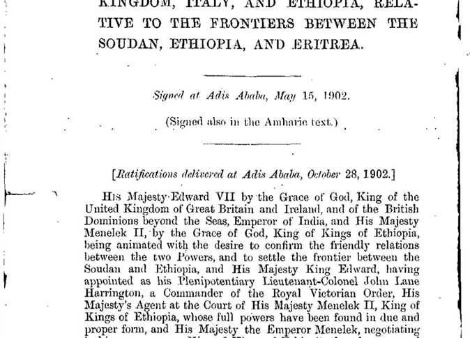 اتفاقية 1902، ترسيم الحدود بين مصر والسودان وإثيوبيا، اتفاقية أديس أبابا، حقوق مصر في مياه النيل، المادة الثالثة من اتفاقية 1902، سد النهضة، بني شنقول، نهر النيل الأزرق، الوثائق التاريخية لمياه النيل، النزاع المائي بين مصر وإثيوبيا